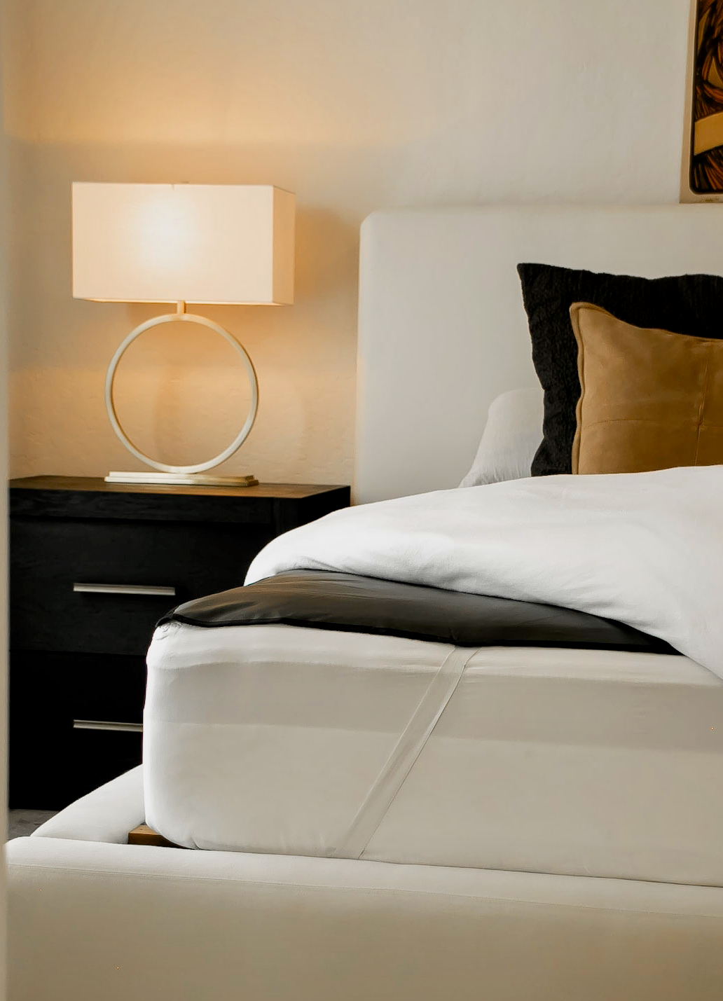 These mats are more comfortable compared to our previous black carbon Sleep Mat material and are about half the thickness so it won't trap heat against your body. There are no perforations in the surface area of these Mattress Covers so not only are they more comfortable, but you're 100% grounded no matter where you move. This also makes them really easy to wipe down and clean! The hypoallergenic nature of carbon helps combat allergens in your bed. With no perforations, these covers not only ground you, they also create a physical shield against the dust and mites living in your mattress. Installation is easy: Simply slide the straps around each corner of your mattress and you're done! No more wrestling to get straps around the entire mattress. You can put the Mattress Cover over or under your fitted sheet. Direct skin contact is always best so placing the Mattress Cover on top of your fitted sheet is ideal. However, the Mattress Covers are designed to 100% ground you when placed under your fitted sheet as well. These products are really durable! So far, we've tested these products for 5+ years and they are as conductive and blemish-free as the day we started. While the springs in your mattress may fail you at some point, the conductivity of your Cover won't. Our new conductive material is designed for a lifetime of conductivity, and like all of our products, it comes with a one year warranty.